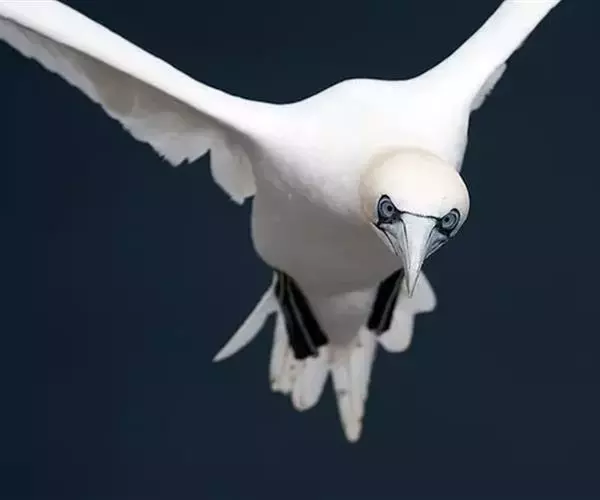 北方鲣鸟身体呈高度流线型,适于潜水捕鱼,有时从高达45米处垂直俯冲入水;时常集群取食,捕捉如鲱鱼和鲭鱼等浅水鱼;飞行能力很强,飞行时振翅和滑翔交替,常成群排成一纵队;在很高的斜坡、悬崖顶上或宽阔的悬崖边上营群巢,两巢相隔的距离,约与两鸟栖坐时两喙的距离相等;富侵略性,叫声深沉而刺耳;幼鸟经5次换羽后方能长出成羽。