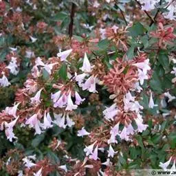 大花六道木,忍冬科六道木属半常绿矮生灌木。其幼枝为红褐色,有短柔毛;叶片倒卵形为墨绿色,…
