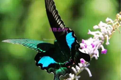 巴黎翠凤蝶中型凤蝶,躯体黑褐色,散布绿色亮鳞。后翅M3脉端有一明显叶状尾突。翅背面底色黑褐色,密布…