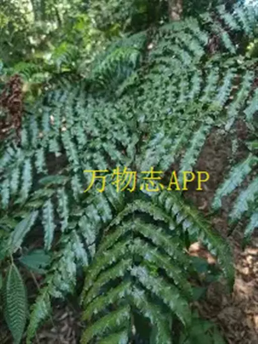 植株高1-3米,有短主干,或树状主干高达数米,顶部生出几片大叶。叶柄红棕色,略光亮,基部略膨大,粗糙或略有小尖刺,被褐棕色披针形厚鳞片;叶片大,长2-3米,一回、二回深裂以至二回羽状,沿叶轴和羽轴上面有棕色鳞片,下面粗糙;羽片互生,斜展,柄长2.5-3厘米,长圆状披针形,长30-50厘米,中部宽10-18厘米,顶端长渐尖,有浅锯齿;小羽片约20对,互生,近平展,柄长约1.5毫米,小羽轴相距2-2.5厘米,条状披针形,基部截形,宽1.2-1.5厘米,顶端尾状渐尖,边缘近全缘或有疏锯齿,或波状圆齿;叶脉两边均隆起,主脉斜疣,小脉3-4对,相邻两侧的基部一对小脉(有时下部同侧两条)顶端通常联结成三角状网眼,并向叶缘延伸出一条小脉(有时再和第二对小脉联结),叶为坚纸质,干后疣面褐绿色,下面灰绿色,两面均无毛。孢子囊群圆形,着生于小脉背面近基部处,无囊群盖,隔丝短。