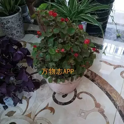 多年生常绿草本,茎直立,稍肉质,高15-30厘米。单叶互生,有光泽,卵圆至广卯圆形,长5-8厘米,宽3-6厘米,先端急尖或钝,基部稍心形而斜生,边缘有小齿和缘毛,绿色。聚伞花序腋生,具数花,花红色,淡红色或白色。蒴果具翅。花期3-12月。 四季秋海棠