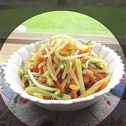 花生中含有25%~35%的蛋白,主要有水溶性蛋白和盐溶性蛋白,水溶性蛋白又称为乳清蛋白,占花生蛋白的10%左右,盐溶性蛋白占花生蛋白的90%。盐溶性蛋白主要包括花生球蛋白和伴花生球蛋白,花生球蛋白是由两个亚基组成的二聚体,伴生花生球蛋白由6到7个亚基组成。花生中的蛋白与动物性蛋白营养差异不大,而且不含胆固醇,花生蛋白的花生蛋白的生物价为58,蛋白效价为1.7,其营养价值在植物性蛋白质中仅次于大豆蛋白 。花生果实还含脂肪、糖类、维生素A、维生素B6、维生素E、维生素K,以及矿物质钙、磷、铁等营养成分,含有8种人体所需的氨基酸及不饱和脂肪酸,含卵磷脂、胆碱、胡萝卜素、粗纤维等物质。花生含有一般杂粮少有的胆碱、卵磷脂,可促进人体的新陈代谢、增强记忆力,可益智、抗衰老、延寿 。