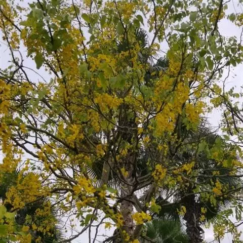 大叶相思(学名:Acacia auriculiformis A. Cunn. ex Benth.)是豆科,金合欢属常绿乔木,枝条下垂,树皮平滑,灰白色;叶片镰状长圆形,两端渐狭,穗状花序,簇生于叶腋或枝顶;花橙黄色;花萼顶端浅齿裂;花瓣长圆形,荚果成熟时旋卷,果瓣木质,种子黑色,围以折叠的珠柄。