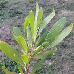 幼苗具二回羽状复叶,末回每个分枝叶柄上有小叶6-8对,幼苗第4片真叶才开始变态,即小叶退化,叶柄呈叶状,变态叶披针形、革质,长10-25厘米,宽1.5-5厘米,两端渐狭,顶端略钝,平行脉3-6条(其中3条特别明显)。大叶相思宽大的假叶互生,呈椭圆形,长约10厘米;虽然它们在外貌上和真正的叶子没甚么分别,亦可进行光合作用,但其实那只是叶柄,不是真正的叶子。真叶只在幼苗时期才出现。
