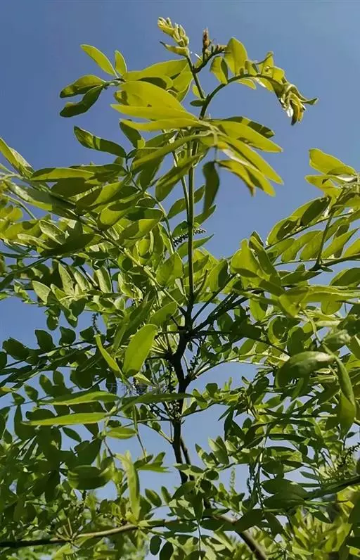 树皮平滑,灰白色。枝干无刺,小枝有棱、绿色且枝条下垂,小枝无毛,皮孔显著。