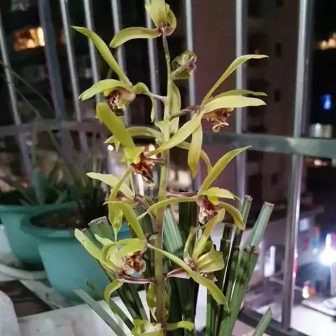 寒兰是兰科兰属的地生草本植物。茎为椭圆形;叶呈带状,尾部修长渐尖,叶脉较明显;每秆花枝开5-12朵,…