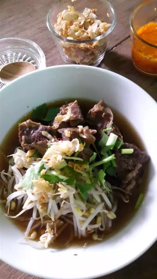 5 煮面同时 把汤盛入碗中 搅匀碗中的肉汁