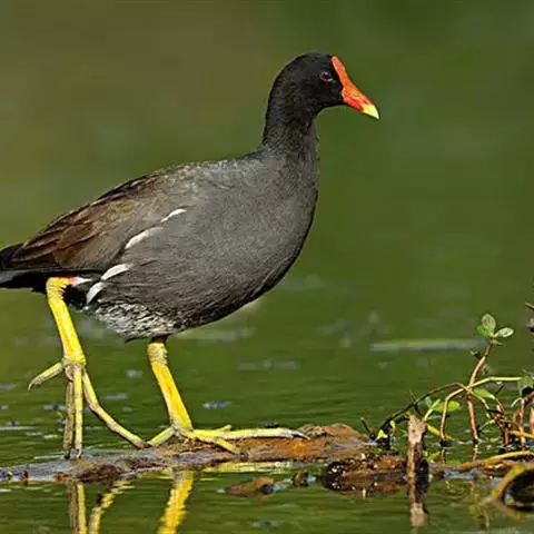 黑水鸡:是鹤形目、秧鸡科的鸟类,共有12个亚种。中型涉禽,体长24-35厘米。嘴长度适中,…