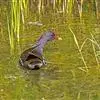 杂食性,但食谱中大部分为水生昆虫及其幼虫,包括鞘翅目、半翅目、蜻蜒目、襀翅目、石蛾科和蚊科,也吃环节动物、软体动物、小甲壳类、小鱼以及绿色植物和种子(包括薹草),在笼养条件下还吃小蜥蜴和壁虎。常在植物茂密处及其附近活动,喜欢在水较浅而即将干涸的泥坑中觅食。在地面上落叶堆中或浅水中探食,偶而在较深的水中觅食,通常一边在漂浮植物和折断的芦苇上行走和游泳,一边觅食,还可一再潜水捕捉食物。有时也在水边泥地上或水中植物上奔跑觅食,很少通过游泳或潜水觅食。