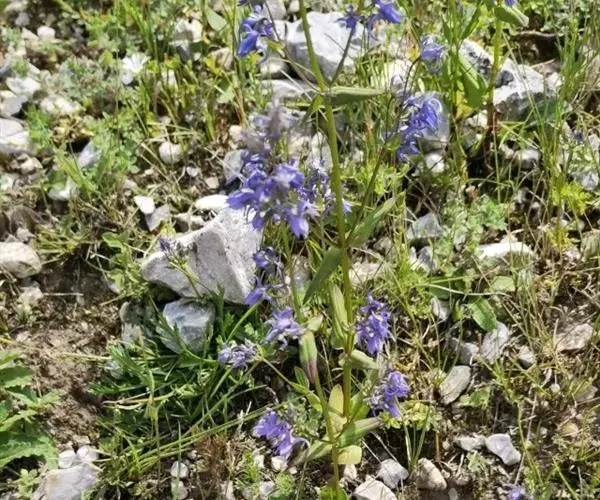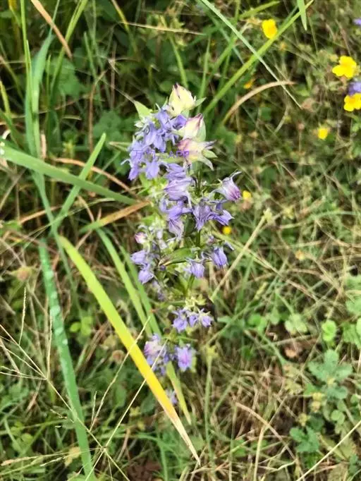 聚伞花序腋生和顶生;花梗长短不相等,长0.5-3.5厘米;花4数,直径1-1.5厘米;花萼裂片椭圆形或卵形,长(3)4-6毫米,宽2-3毫米,先端通常渐尖,常具小尖头,具3脉;花冠蓝色或紫色,花冠筒长约2毫米,裂片卵圆形或椭圆形,长约6毫米,宽4-5毫米,先端具小尖头,距长5-6毫米,向外水平开展;雄蕊内藏,花丝长3-5毫米,花药卵圆形,长约1毫米;子房卵形,长约5毫米,花柱极短,长约1毫米,柱头2裂。
