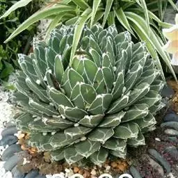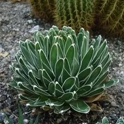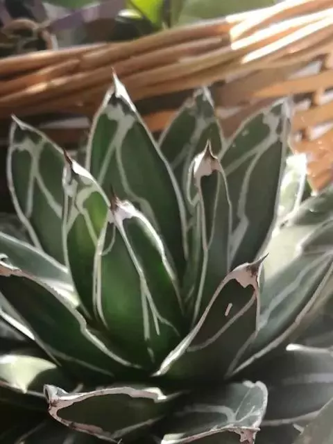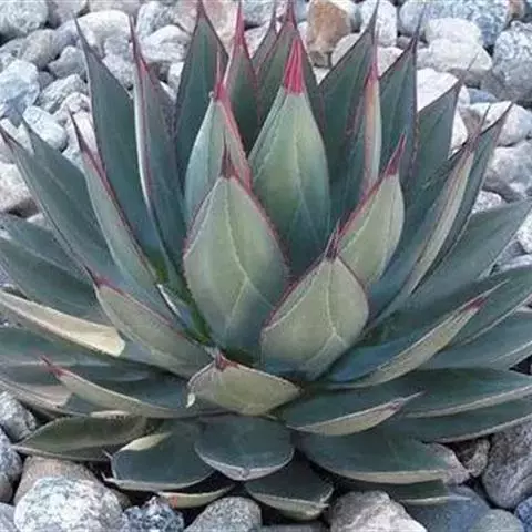 皇后龙舌兰是天门冬科、龙舌兰属多年生草本多浆植物。无主茎,叶丛生,莲座状,株幅40厘米。叶较多,…