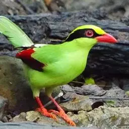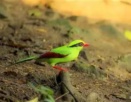 蓝绿鹊:中型鸟类,共有5个亚种。体长36-38厘米。尾长,嘴、脚红色。通体羽色主要为草绿色,…
