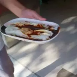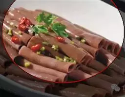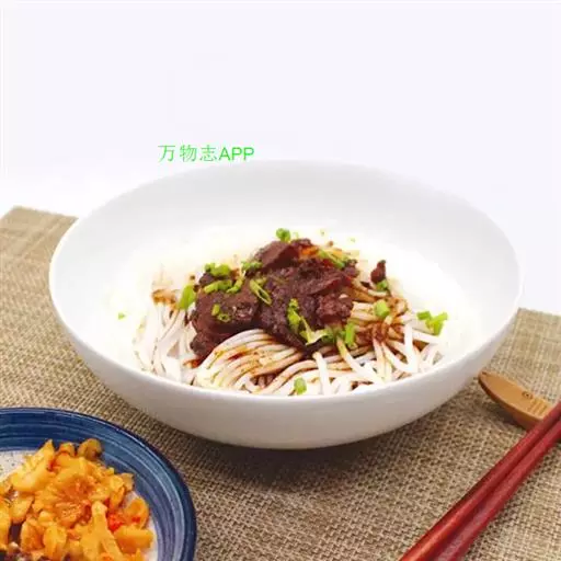 3、食用时按下列顺序操作:米粉(一般一碗牛肉粉约150克-200克)放入开水锅中烫透,捞入汤碗里,在米粉上铺上牛肉片(25克),盖上炖熟的牛肉丁(25克)或牛筋丁,放上适量的酸菜,加上少许牛油,最后浇上滚烫的原汤,洒上芫荽节即可。