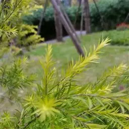 黄金串钱柳是桃金娘科白千层属常绿乔木植物。其树干暗灰色,树皮不易剥落;具油腺点,香味浓郁;叶革质互生,…