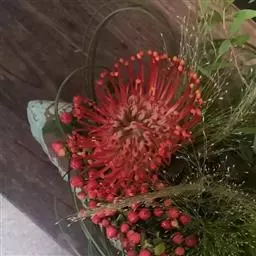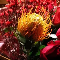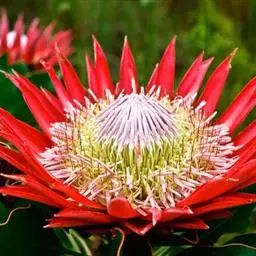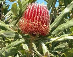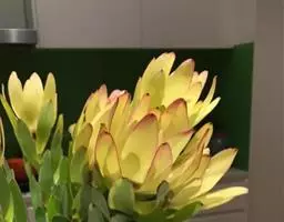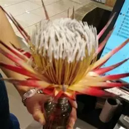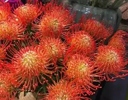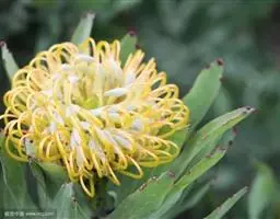 帝王花,山龙眼科帝王花属多年生常绿灌木植;茎干粗壮,叶色翠绿光亮;花朵呈圆球状;其苞片有的完全打开,…