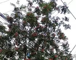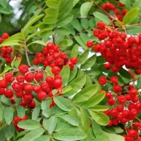 花楸树拉丁学名:Sorbus pohuashanensis (Hance) Hedl.系落叶乔木。喜湿,喜阴,耐寒。皮灰褐色。芽及嫩枝都有白色绒毛。羽状复叶,叶缘上部有齿,叶表色暗绿,叶背粉白。花为白色。花径达10厘米左右,非常美观,花期5-6月份。果实呈圆形,红色,成熟期在10月。花楸树是一种病虫害少,生命力强,成活容易的速生树,它既是优质用材林,又是种植天麻的好菌料,还是市场畅销的中草药。