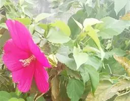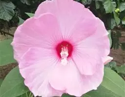 大花秋葵(学名:Hibiscus grandiflorus Michx.)是锦葵科宿根多年生草本植物,高1-2米,落叶灌木状。茎粗壮直立,基部半木质化,具有粗状肉质根。单叶互生,具有叶柄,叶大。花序为总状花序,朝开夕落。花大,单生于枝上部叶腋间,花瓣5枚,有白、粉、红、紫等颜色。花期6-9月。蒴果扁球形,种子褐色,果熟期9-10月。
