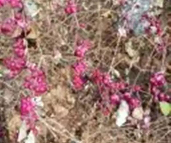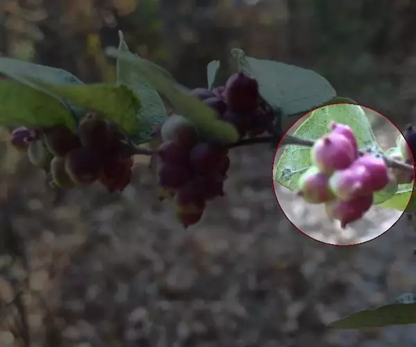 毛核木(学名:Symphoricarpos sinensis Rehd.)是忍冬科,毛核木属直立灌木,高可达2.5米;叶菱状卵形至卵形,上面绿色,下面灰白色,两面无毛,花小,无梗,单生于短小、钻形苞片的腋内,苞片叶状且较长;萼齿卵状披针形,花冠白色,钟形,裂片卵形,雄蕊着生于花冠筒中部,花药白色,果实卵圆形,蓝黑色,具白霜;7-9月开花,9-11月果实成熟。