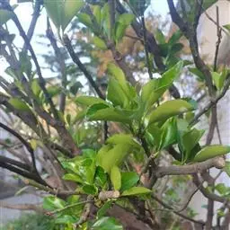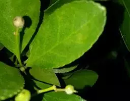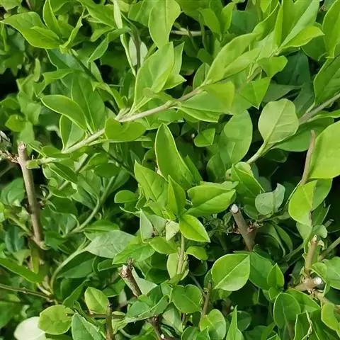 常绿灌木或小乔木,高达8米。 叶光亮革质,倒卵形或窄长椭圆形,长3-6厘米,宽2-3厘米。 聚伞花…