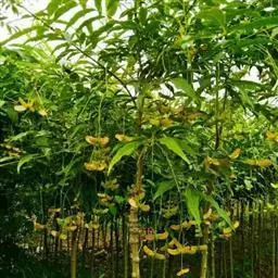 园林用途园林中可作庭院观赏树种,孤植或制作树桩盆景。都具有很高的观赏价值!金线吊蝴蝶,又称金丝系蝴蝶。别名陕西卫矛、金丝吊燕,为卫矛科卫矛属落叶大灌木或小乔木,高达数米。原产陕西、甘肃、四川等地,是优良的秋季观果植物。它枝叶茂密,蒴果四棱下垂,成熟后呈红色,开裂后露出橙黄色的假果皮。果梗下垂,果形奇特,似金线悬挂着蝴蝶,故称金丝吊蝴蝶。蒴果经久不落,被风一吹,远观似群蝶飞舞。深秋黄叶与深红叶相间,配上悬挂的果实,别有特色。 金线吊蝴蝶喜光、耐寒,适应性强,不受土壤酸碱性的影响,在树阴下也能生长,管理粗放。播种繁殖生长缓慢,园林金丝吊蝴蝶苗木现常用卫矛嫁接繁殖。金线吊蝴蝶,花观果期较长,每年二月发芽,十二月落叶,十一月是花期最艳之时。这时树会长出千条金线,长约二十公分,每条线上吊一棵状如蝴蝶的果实,奇特美丽,很是惹人喜爱。金丝吊蝴蝶属国家名贵品种花,经过林科技术人员近百年的精心培育,现已初具成功。属于落叶小乔木类,花十分艳丽,酷似蝴蝶。属国家一级保护品种。是工程绿化、小区绿化、广场及公园的极佳选择!目前,西北五省城市的公园无有此品种。垂丝卫矛,别名豆瓣树、青皮树,灌木或小乔木。产于湖北、陕西、四川等地,但野生树种现比较罕见十分稀少。它叶椭圆形,在湖北襄樊3月发芽吐叶,从叶柄基部长出10厘米左右的绿色垂条,4月垂条下端开出白、紫色小花,花期20天左右,此时最怕风吹,风一吹,丝条互相缠绕,容易掉花、掉果。花谢后结果,果呈四角形,5至7月果实逐渐长大,10月份果实基本成熟,丝条变黄,果实呈金黄色,种子红色,12月上旬果壳开始炸裂,种子自然下落,每果有种子5至6粒。