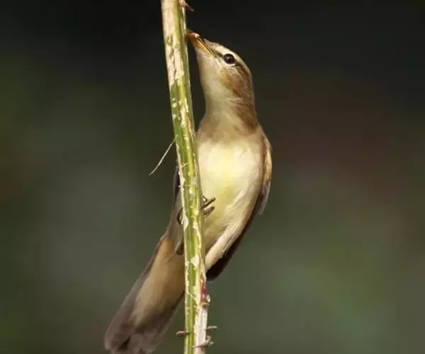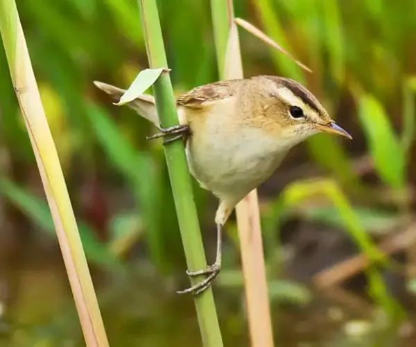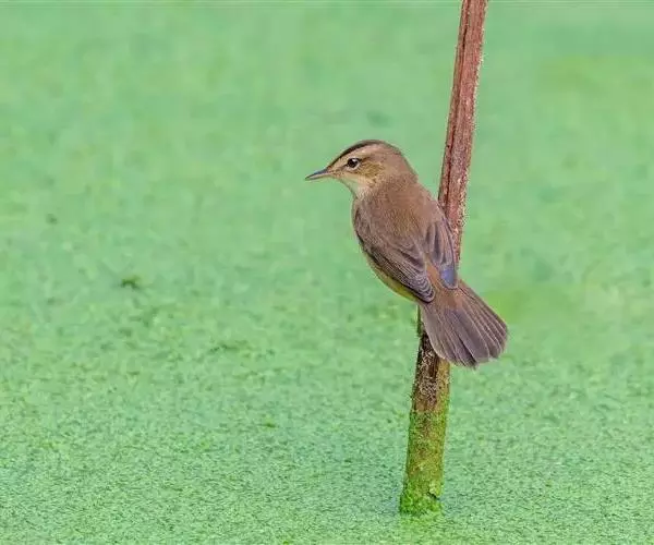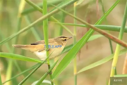 黑眉苇莺(学名:Acrocephalus bistrigiceps):体重7-11克,体长11-13厘米。上体橄榄棕褐色;眉纹淡黄色,杂有明显黑褐色纵纹;第2枚初级飞羽较第6枚短;下体白色,两胁暗棕色。虹膜暗褐色;嘴黑褐色,下嘴基淡褐色;脚暗褐色。