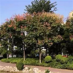 栽植:全缘叶栾树喜土层深厚、略带酸性的环境,所以笔者采取了大穴换土的方法,以1米至2米高的全缘叶栾树为例,树穴长1米、宽1米、深1米。挖好穴后,填30厘米厚的炉渣做渗水层,炉渣上铺一层草苫,以免上半部的土壤因浇水而流入炉渣缝隙。用配制好的种植土,掺腐殖酸肥料和腐熟的有机肥料以及盐碱地改良肥,填入树穴,夯实至距地面50厘米深。之后将种植土填入树穴,夯实至距地面45厘米处,这样断根处不会直接与肥土接触,不易产生烂根。然后,将黄山栾轻轻放入树穴,阳面向南,然后再填入混合土踏实。 复羽叶栾树