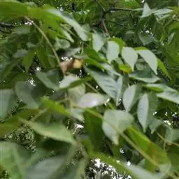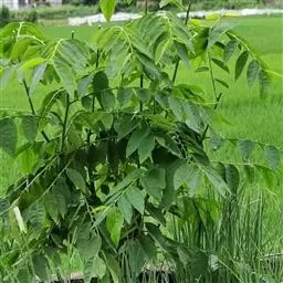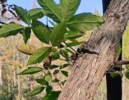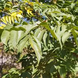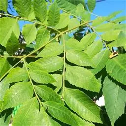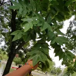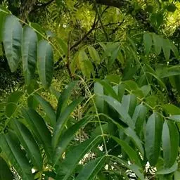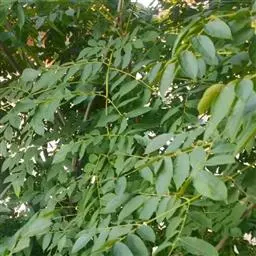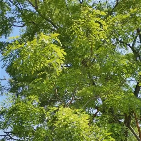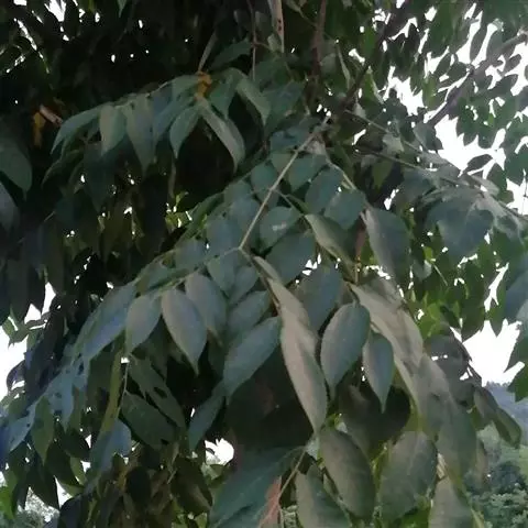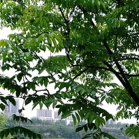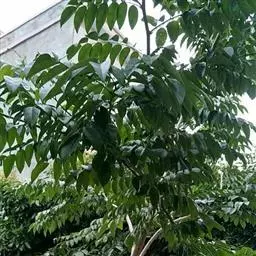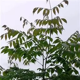 乔木,高可达20余米;皮孔圆形至椭圆形;枝具小疣点。叶平展,二回羽状复叶,长45-70厘米;叶轴和叶柄向轴面常有一纵行皱曲的短柔毛;小叶9-17片,互生,很少对生,纸质或近革质,斜卵形,长3.5-7厘米,宽2-3.5厘米,顶端短尖至短渐尖,基部阔楔形或圆形,略偏斜,边缘有内弯的小锯齿,两面无毛或上面中脉上被微柔毛,下面密被短柔毛,有时杂以皱曲的毛;小叶柄长约3毫米或近无柄。小叶通常全缘,有时一侧近顶部边缘有锯齿。