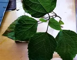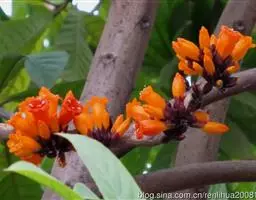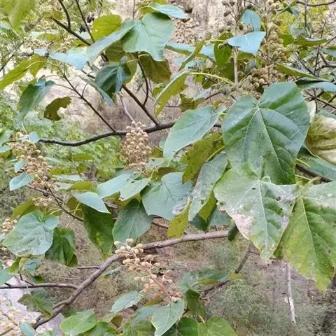 水桐木又名:水同木,哈氏榕,尖刀树。常绿小乔木,树皮黑褐色,枝粗糙,叶互生,纸质,倒卵形至长圆形,长10-20厘米,宽4-7厘米,先端具短尖,基部斜楔形或圆形,全缘或微波状,表面无毛,背面微被柔毛或黄色小突体;基生侧脉短,侧脉6-9对;叶柄长1.5-4厘米;托叶卵状披针形,长约1.7厘米。榕果簇生于老干发出的瘤状枝上,近球形,直径1.5-2厘米,光滑,成熟桔红色,不开裂,总梗长8-24毫米,雄花和瘿花生于同一榕果内壁;雄花,生于其近口部,少数,具短柄,花被片3-4,雄蕊1枚,花丝短;瘿花,具柄,花被片极短或不存,子房光滑,倒卵形,花柱近侧生,纤细,柱头膨大;雌花,生于另一植株榕果内,花被管状,围绕果柄下部。瘦果近斜方形,表面有小瘤体,花柱长,棒状。花期5-7月。