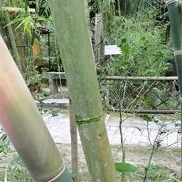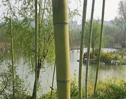 人面竹(学名:Phyllostachys aurea Carr. ex A. et C. Riv.)是禾本科刚竹属植物。竿劲直,高5-12米,粗2-5厘米;中部节间长15-30厘米,基部或有时中部的数节间极缩短;箨环幼时生一圈白色易落的短毛。箨鞘背面黄绿色或淡褐黄带红色;箨舌很短,淡黄绿色;箨片狭三角形至带状,开展或外翻而下垂。末级小枝有2或3叶;叶鞘无毛;叶耳及鞘口繸毛早落或无;叶舌极短。小穗含1-4朵小花,上部者不孕。颖果线状披针形,长10-14毫米,直径1.5-2毫米,顶端宿存花柱的基部。笋期5月中旬。