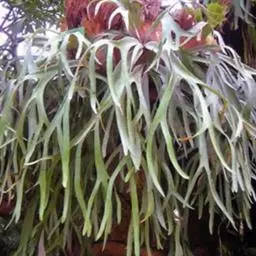 鹿角蕨是鹿角蕨科附生植物,鹿角蕨的叶有二型,营养叶较小,呈圆形、椭圆形或扇形,…