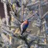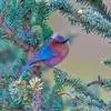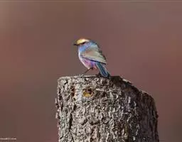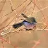 雌鸟:似雄鸟,但具任何紫蓝辉色,所有雄鸟有鲜艳颜色的部位,在雌鸟都变淡或不具,如头呈淡赤褐色,头侧以及下体羽毛概呈淡茶色;两胁稍沾染蓝色。
