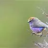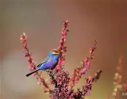 凤头雀莺:小型鸟类。体长9-10厘米,雄鸟呈毛茸茸的紫色和绛紫色,顶冠淡紫灰色,额及凤头白色,尾全蓝。…