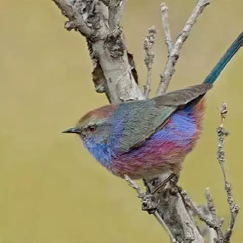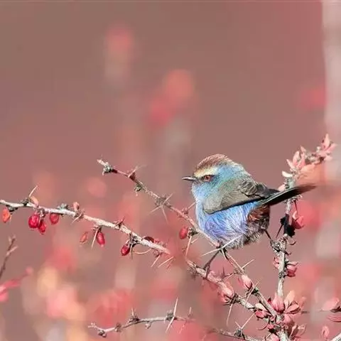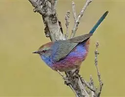 花彩雀莺:体长9-12厘米,是一种毛茸茸偏紫色的雀莺。顶冠棕色,眉纹白。尾长,羽毛松软。…