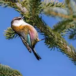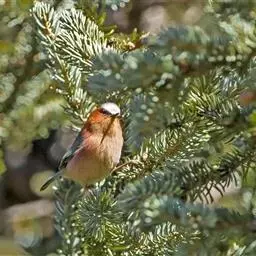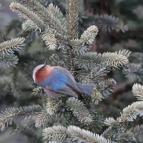 花彩雀莺(学名:Leptopoecile sophiae):体长9-12厘米,是一种毛茸茸偏紫色的雀莺。顶冠棕色,眉纹白。尾长,羽毛松软。前额有一宽阔的眉纹淡黄色,头顶栗色或棕红色,有的具紫蓝色光泽。背灰色,腰和尾上覆羽辉紫蓝色,飞羽灰褐色。外侧三对尾羽外翈羽缘白色,其余尾羽外翈羽缘蓝色。下体皮黄色或紫色,腹中央具栗色斑,有的为紫蓝色而腹为皮黄色。虹膜红色;嘴黑色;脚灰褐色。