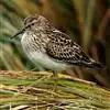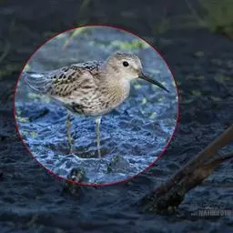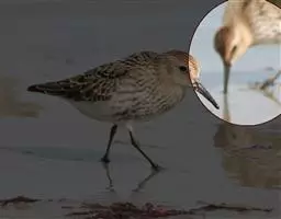 阔嘴鹬是涉禽,体长17厘米。特征为翼角常具明显的黑色块斑并具双眉纹。与黑腹滨鹬平滑下弯的嘴相比,…