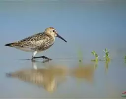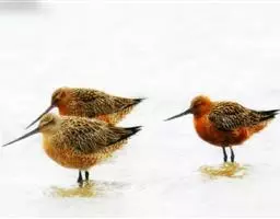 弯嘴滨鹬(学名:Calidris ferruginea)是丘鹬科滨鹬属鸟类动物,小型涉禽,体长19-23厘米。嘴较细长,明显的向下弯曲。夏羽头和下体栗色,上体黑色,具暗栗色和白色羽缘。飞翔时从上看白色腰和翼带极为醒目,从下看, 翼下和尾下白色,其余下体红色,反差亦甚强烈。冬羽上体灰褐色,下体白色,颈侧和胸缀有黄褐色,眉纹白色,飞翔时白色翅带和腰亦甚明显。