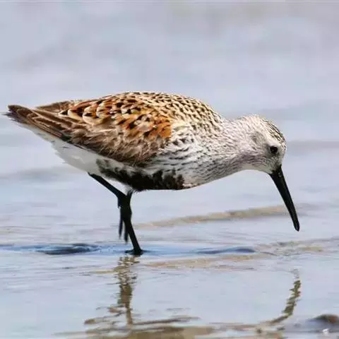 黑腹滨鹬是鹬科滨鹬属鸟类。小型涉禽,体长16-22厘米。嘴黑色、较长,尖端微向下弯曲,脚黑色。…