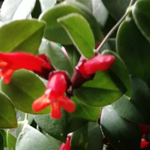 口红花 G.Don)是苦苣苔科,芒毛苣苔属常附生小灌木,茎长可达100厘米,圆柱形,叶对生,叶片革质,…
