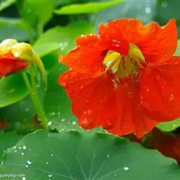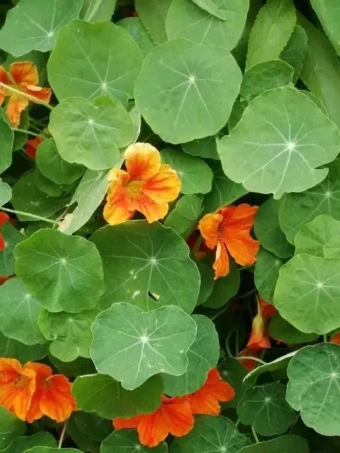 旱金莲是旱金莲科旱金莲属蔓生一年生草本植物。叶互生,叶柄向上扭曲,盾状,叶圆形,具波状浅缺刻,…