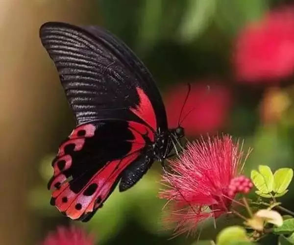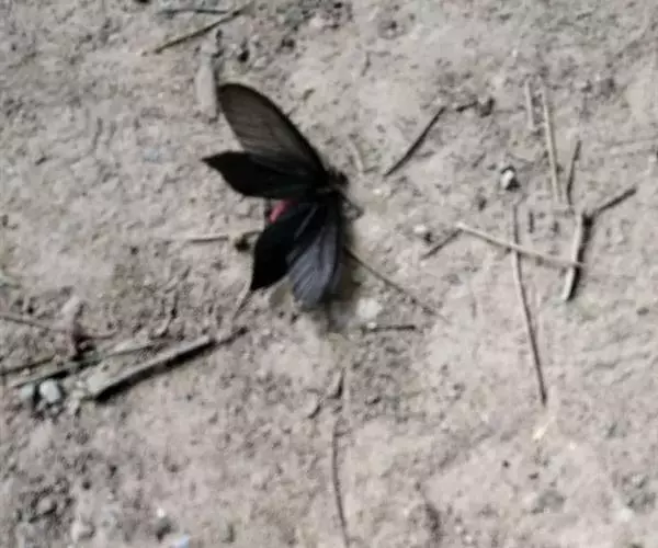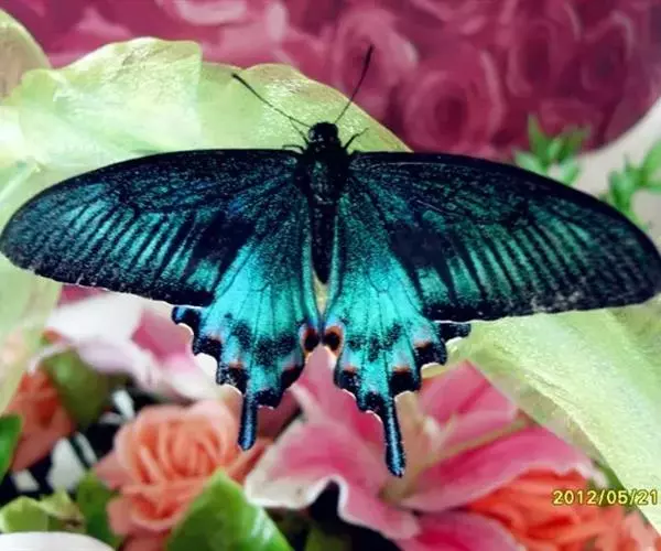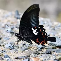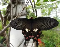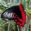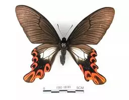 曙凤蝶(拉丁名:Atrophaneura horishana),成虫出现于夏季,生活在中海拔山区。喜访花。本种在局部地区数量不少,但仍被列为保育类昆虫。 曙凤蝶翅展110~130mm,体背黑色,两侧及腹面有红色绒毛。雄蝶翅膀正面黑得发光,有丝绒的质感,后翅背面下半部有曙红色大斑。雌蝶较之雄蝶略大,翅膀正面黑底带些褐色,后翅背面下半部的红色较浅。