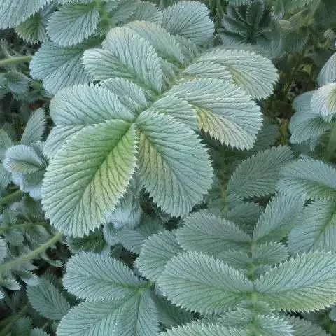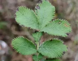 多年生草本,高2-15厘米,植株灰绿色。根圆柱形,多分枝。花茎丛生,密被星状毛及开展微硬毛。基生叶掌状3出复叶,连叶柄长I.5-7厘米,叶柄密被星状毛及开展微硬毛,小叶常有短柄或几无柄;小叶片倒卵椭圆形或菱状倒卵形,长0.8-3厘米,宽0.4-1.5厘米,顶端圆钝,基部楔形,每边有4-6个圆钝锯齿,两面灰绿色,密被星状毛及开展微硬毛,下面沿脉较密;茎生叶1-3,小叶与基生小叶相似;基生叶托叶膜质,淡褐色,被星状毛及开展微硬毛,茎生叶托叶草质,灰绿色,带形或带状披针形,外被星状毛。