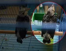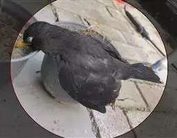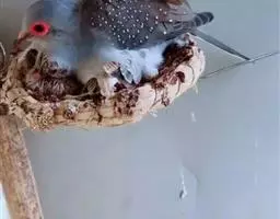 虹膜的内圈为蓝色,外圈为红色,眼周的裸皮为浅蓝色。嘴的基部为浅蓝色,端部灰色沾有橙色,脚红色。