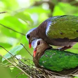 繁殖期为4-7月。雄鸟的求偶行为有点头、挺胸、张翅、展尾和围绕雌鸟跳来跳去,同时发出“咕咕”的叫声,并且不时地佯作在地面上啄食状,雌鸟则以同样的动作和叫声来应答。营巢于森林中高大的树上。巢呈平盘状,甚为简陋,仅用少量枯枝堆集而成。每窝产卵2枚,卵的颜色为白色。孵化期为13-14天。雏鸟为晚成性,经过亲鸟12天的抚育后即可离巢。