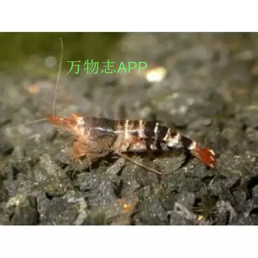 蜜蜂虾(New Bee Shrimp),属于匙指虾科的蜜蜂虾是中国广州的原生种虾类,多由香港出口,身着虎斑花纹 ,身体间杂着四道黑白条纹,花纹的颜色的间隔并不明显,好似蜜蜂身上的纹路而得名。属于观赏虾。