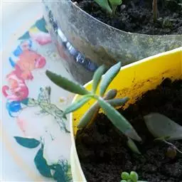 在5-6月或9-10月进行效果最好。选择稍成熟的肉质茎,剪取5-6厘米长,插于沙床中,浇水后用薄膜盖上,室温在15-20℃,插后15-18天生根,30天能盆栽。常用10厘米盆。如种苗不多时,可用叶片扦插。将健壮充实的叶片从叶柄处剪下,待切口稍干燥后斜插或平放沙床上,保持湿度,约10-15天,可从叶片基部生根,并长出新植株。