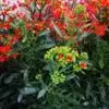 圆锥状聚伞花序,挺直,深绿色。花序长7-10厘米。每株有花序5-7个,着花60 - 250朵。花小,高脚碟状,花径1.2- 1.6厘米,花瓣4片,花朵色彩丰富,花色有绯红、桃红、橙红、黄、橙黄和白等。花冠长管状,基部稍膨大,蓇葖果。种子多数。花期1-4月。 [2-4]