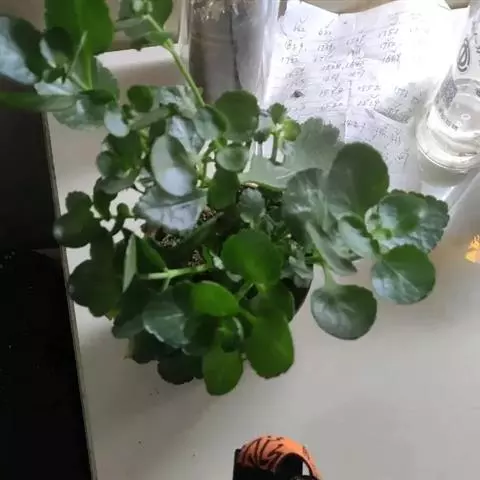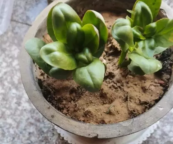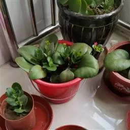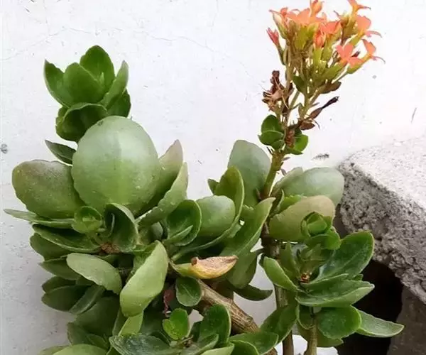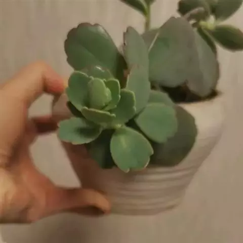 长寿花是常绿多年生草本多浆植物。植株小巧,茎直立,株高10-30厘米。叶对生,叶片密集翠绿,长圆状匙形或椭圆形,长4-8厘米,宽2-6厘米,肉质,叶片上部叶缘具波状钝齿,下部全缘,亮绿色,有光泽,叶边略带红色。叶片属厚肉质,密集深绿,有光泽。