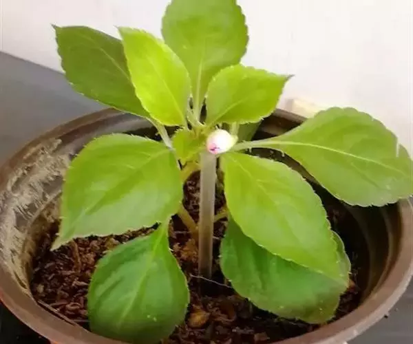 叶小,花粉红。