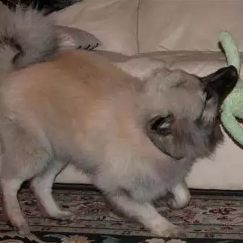 荷兰毛狮犬耳朵小,呈三角形,在头部较高的位置,且竖立;口吻中等长度,既不粗糙也不尖细,…