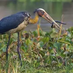 彩鹳:鹳科、鹮鹳属的鸟类。体长93-102厘米,体重2-3.5千克。橙黄色的嘴粗而长,…